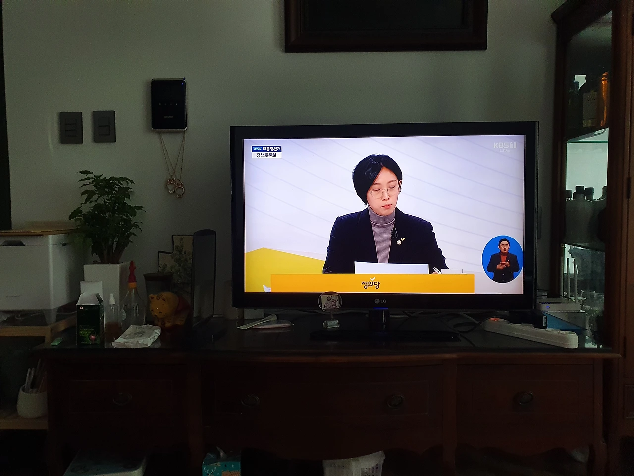 무슨 일이 있나 나가보니 거실 TV를 켜서 한참 방송 중인 대선 정당 정책 설명회를 보여주시더라구요.
