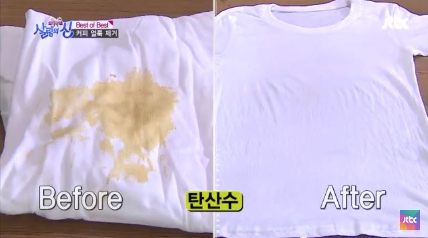 무가당 탄산수를 이용해 문지르거나 아예 푹 담가 놓는다.