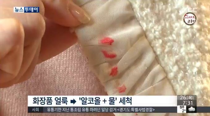 알코올(에탄올)을 뿌린 후 물로 세척한다. 립앤아이리무버도 효과가 있다.
