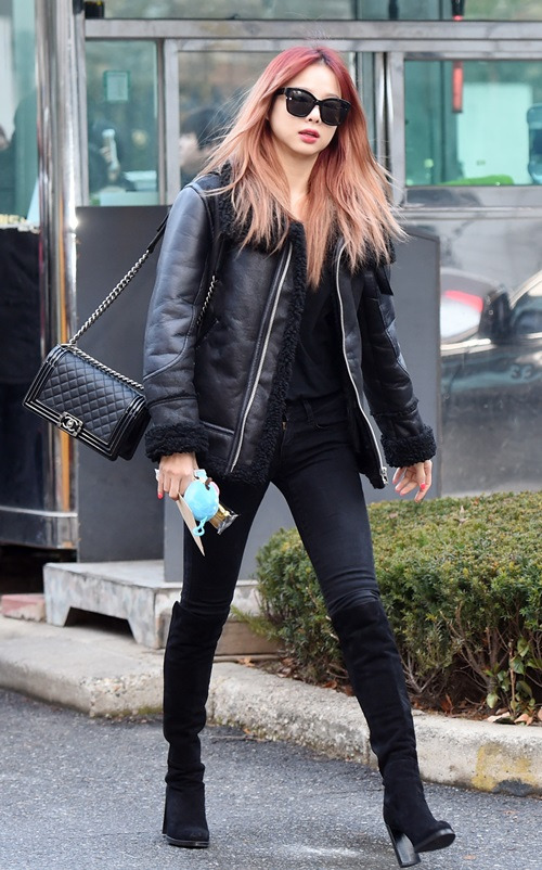 가죽 자켓을 입을 때 ‘올블랙’ 패션이 요긴하다. 가죽 자켓은 다른 색상과 입으면 다소 이질감이 들고, 검정색 계열과 매치해야 과하지 않다. 상체를 날씬하게 만들어주는 효과도 있다.