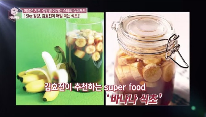 바나나식초 다이어트는 할리우드 스타 기네스 펠트로, 가수 서인영, 개그우먼 김효진이 효과를 본 다이어트 방법이다. 식사량을 줄일 필요 없이 바나나식초를 물이나 음료 대신 마시면 된다. 바나나식초는 1:1:1:의 비율로 섞은 꿀, 흑설탕, 식초에 바나나를 넣은 후 2주간 숙성시키면 만들 수 있다. 부기 해소와 피로 회복에 좋아 건강 음료로도 좋다. 특유의 냄새 때문에 마시는 것은 조금 힘들 수도 있다.