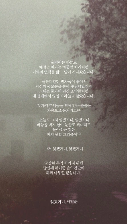 '잊겠거니'는 '인터뷰에 답하면서 문득 떠오른 시'라며 서덕준 씨가 올린 시다.