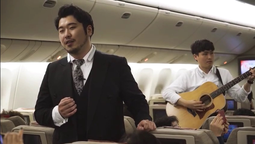 세계 최초로 300석 규모의 국적항공사 국제선 비행기에서 성악 라이브 공연을 펼치고, 탑승객 전원에게 제품을 증정한 이벤트 실황을 영상에 담았다.