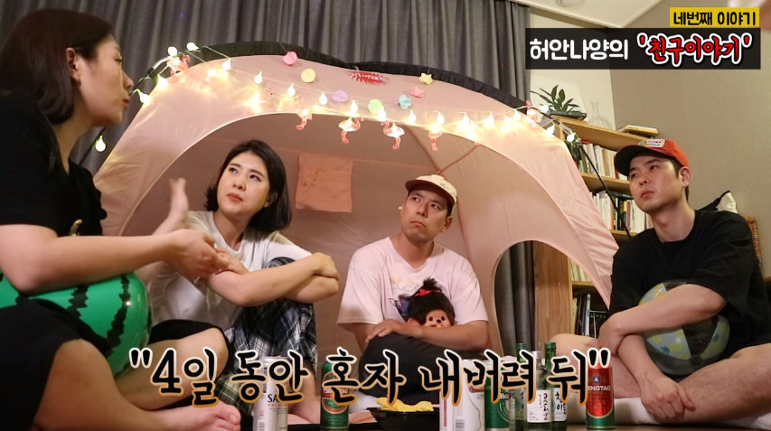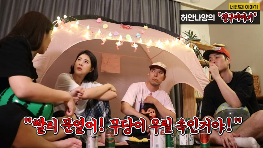 지난 22일 강유미 씨는 유튜브 채널에 지인들과 함께 늦은 밤 괴담을 나누었던 영상을 공개했다. 이 자리에서 허안나 씨는 괴담 하나를 이야기했다.