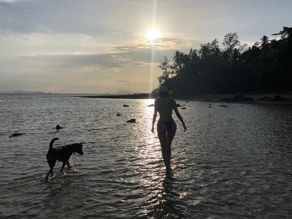 지난달 31일과 30일에도 바다를 배경으로 한 사진을 올렸다. 강민경 씨는 태국으로 휴가를 떠난 것으로 알려졌다.