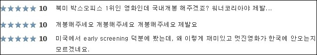 영화는 관객들의 폭발적인 요청에 따라 최근 10월 25일 국내 개봉이 확정됐다. 해외 영화가 관객들의 요청으로 국내 개봉이 결정된 것은 지난해 큰 인기를 끌었던 영화 '겟 아웃'에 이어 두 번째다.