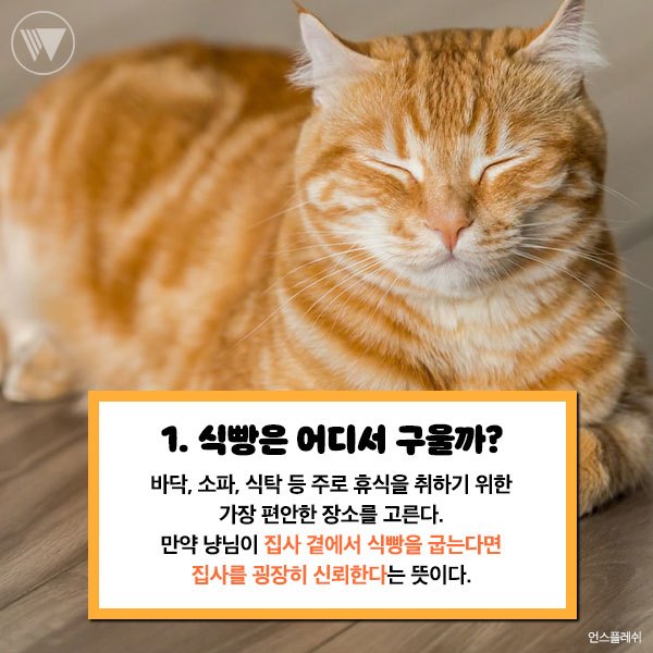 만약 냥님이 집사 곁에서 식방을 굽는다면 집사를 굉장히 신회한다는 뜻이다.