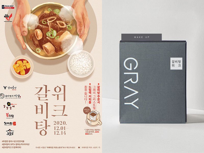 행사 기간 동안 참여 브랜드 매장 또는 온라인 몰에서 갈비탕 위크 메뉴를 주문하는 고객에게 국가대표 바리스타 (2017년 월드 바리스타 챔피언십 국가대표 선발전 1위) 방준배의 노하우가 집약된 스페셜티 커피 전문 브랜드 ‘그레이 그리스트밀’의 드립백 커피를 증정한다.