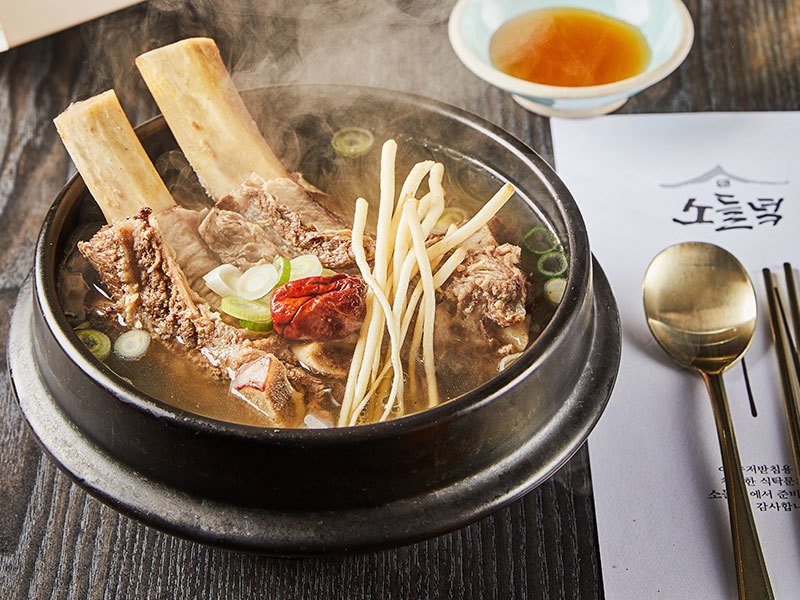 소들녘 왕갈비탕: 인삼, 대추, 삼채, 천궁 등 십여 가지가 넘는 건강한 식자재를 선별해 소들녘의 오랜 전통 방식으로 오랜 시간 푹 고아낸 육수와 큰 갈빗대가 통째로 들어간 갈비탕
