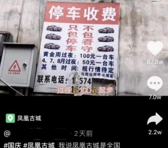 그렇다 보니 이번 국경절 연휴 동안 많은 중국인들이 봉황고성을 찾았다고 하는데요. 하지만 평상시보다 10배다 높은 주차비로 인해 방문 첫날부터 인상을 찌푸릴 수뿐이 없었다고 합니다.