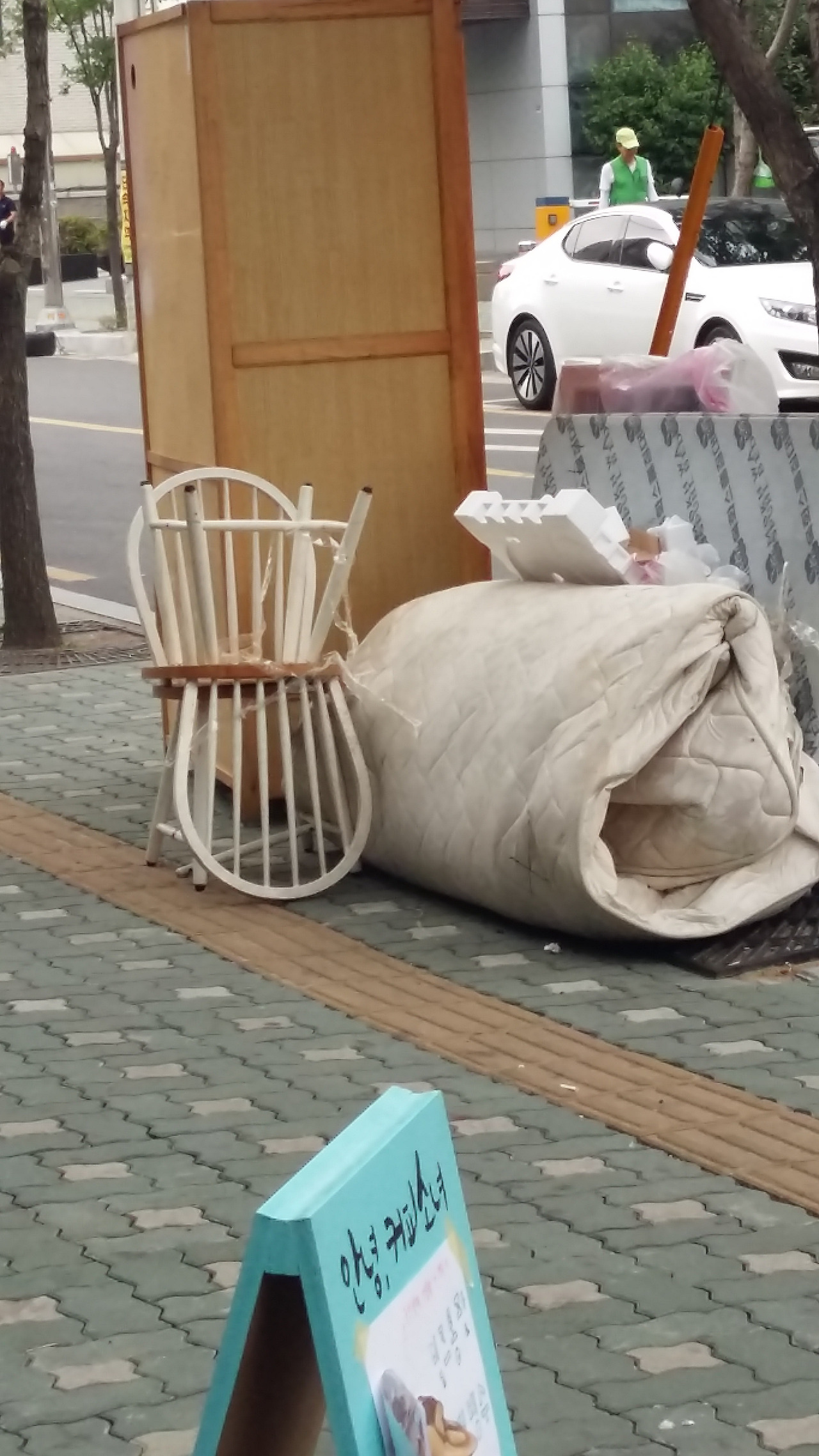 누군가 이사 가고 남은 자리. 그들에게는 쓰레기밖에는 안되었나보다. 의자는 멀정히보였는데도 매트리스랑 가구들과 마구잡이로 버려져있었다. (그것도 폐기물 스티커도 붙이지않고...)