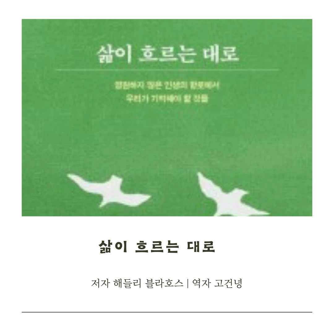 '삶이 흐르는 대로'라는 제목을 보고 삶을 어떻게 대해야 하는지 제시하는 책이라 생각했다.