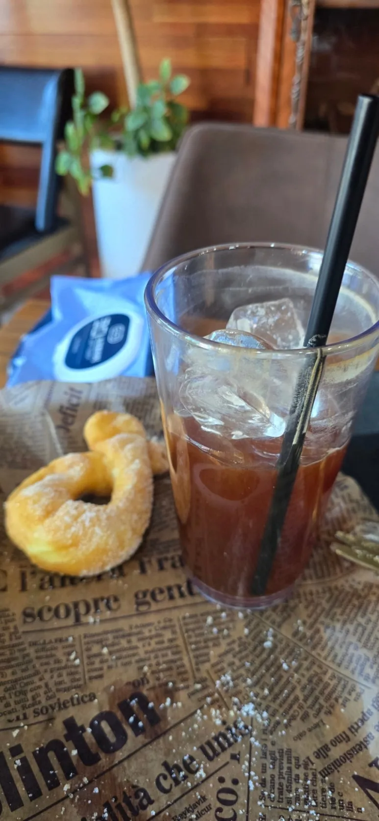 카페의 문을 열고 들어가 꽈배기 3개와 도넛 1개 그리고 아이스 아메리카노를 시켰다.