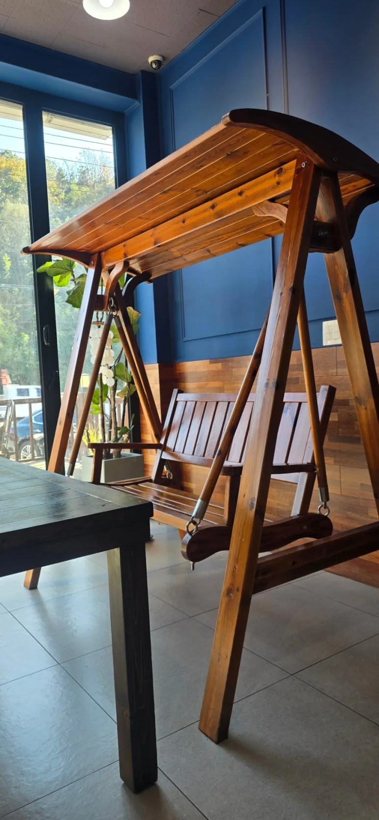 내가 앉은 테이블 옆으로 정원에나 있을 법한 흔들 그네가 놓여 있다.