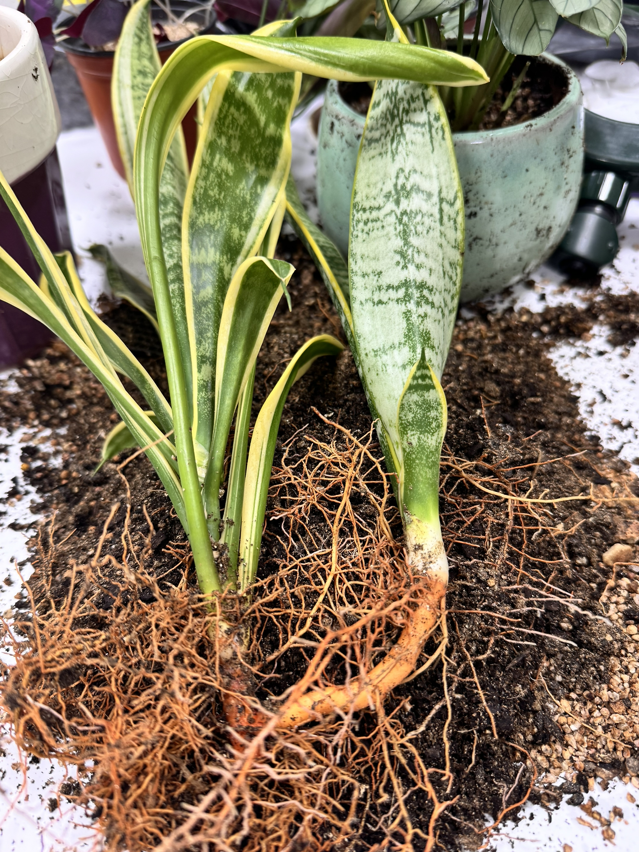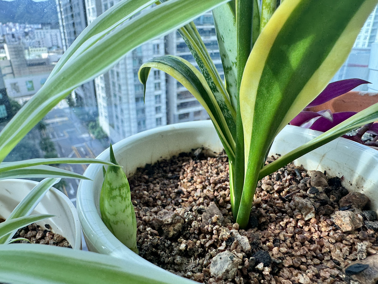 뿌리가 붙어 있어 어떻게 분리해야 하나 고민하며 검색하는데 별다른 정보가 없어서 부러뜨려서 심었다. 산세베리아에게도 미안하다고 잘 자리 잡으라고 속삭였다.