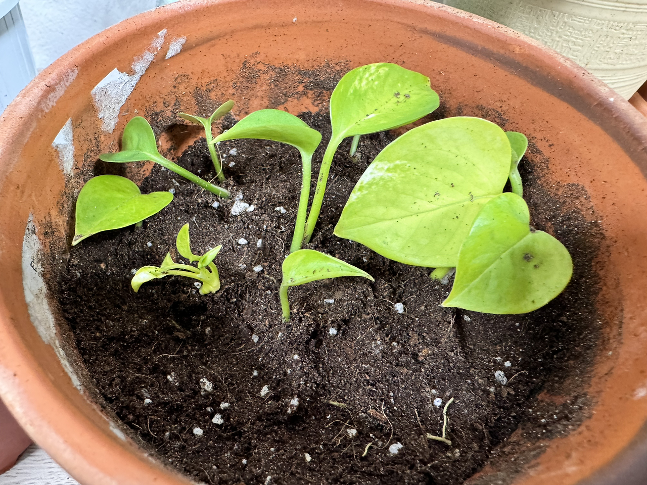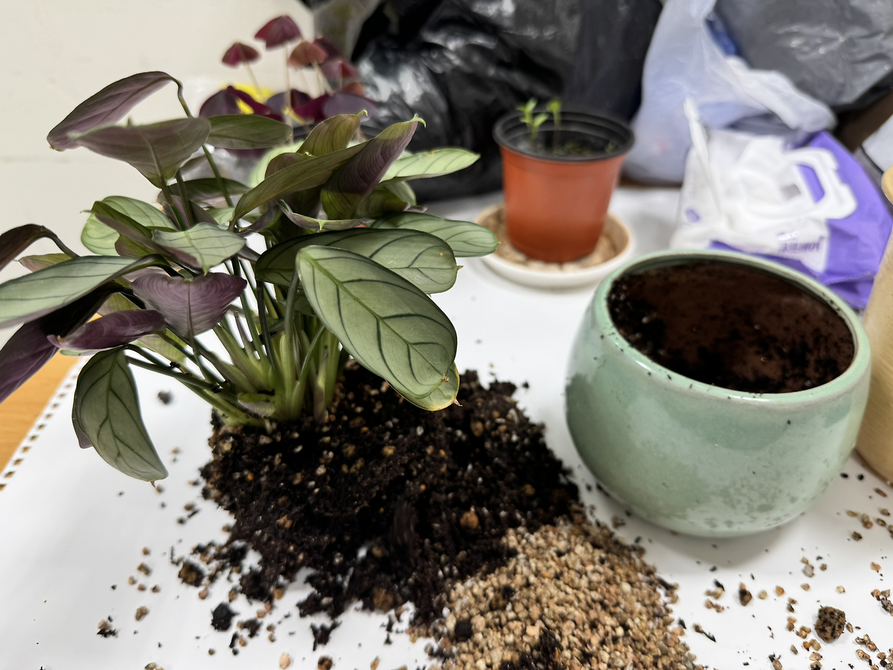 분갈이를 하면 한동안 식물들이 몸살을 겪는다. 분갈이 직후에는 물도 안 두고 햇빛이 아닌 반그늘에 둔다. 시들 거리다 새 잎이 나오고 풍성해진다.