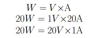 1. 전력(W) = 전압(V) x 전류(A) (W=VI 라고도 배웠다.)