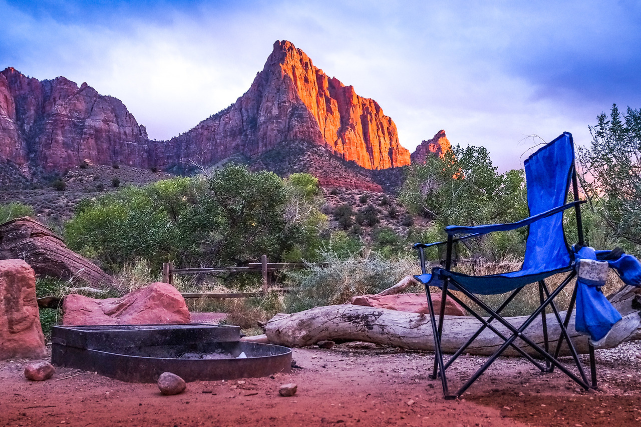 캠핑장이 예술! 자이언 캐년의 깊숙한 산 속에 위치해 있다. 이런 깊은 산속의 캠핑장에는 시설이 부족하다. Hook Up 이라고 부르는, 전기와 상/하수도 시설은 없다. 중간중간 몇개의 화장실이 있고, 그 곳에 식수대와 쓰레기장이 있다. 대신, 백팩을 매고 한참을 등산해야 볼 수 있는 경치에서 캠핑을 할 수 있다는 어마어마한 경험을 할 수 있게 해 준다.