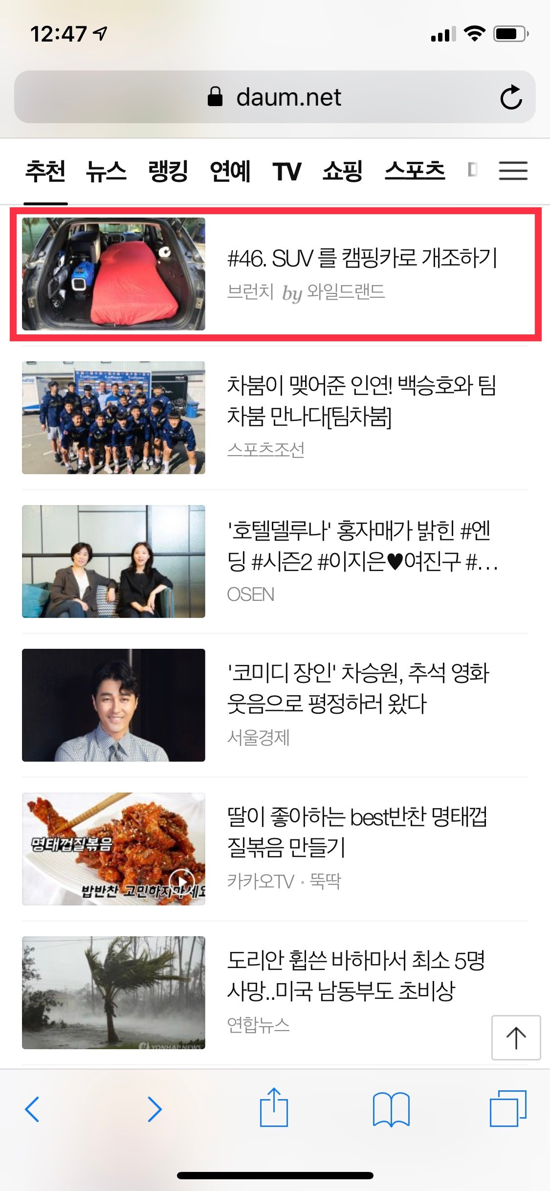 1. 아무데서나 차를 세우면 우리집이 된다. 그냥 뒤로 가서 누우면 된다.