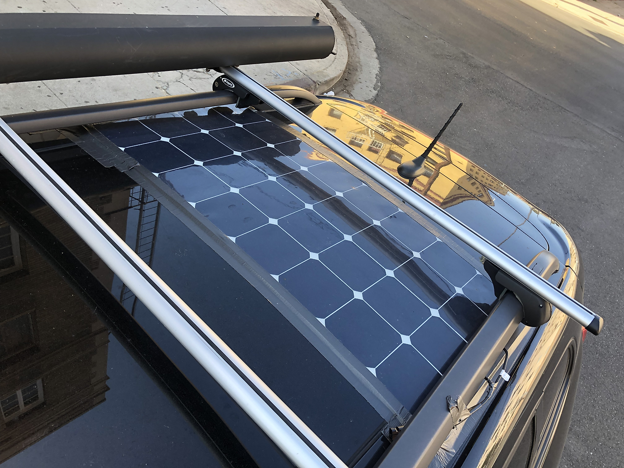 적어도 200W 태양광 패널은 상시적으로 설치해야 하는데, 아쉽게도 내 차 지붕에는 200W 가 고정으로 들어가긴 어렵다. (이 차를 선택할때 가장 망설였던 부분이다.) 따라서, 할 수 없이 또 한 장의 100W 패널은 착탈식으로 차 앞쪽에 붙였다 뗐다 한다.