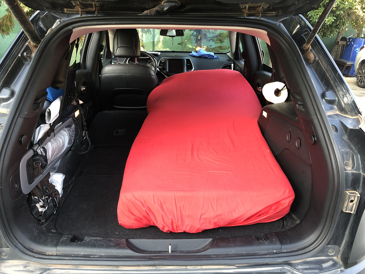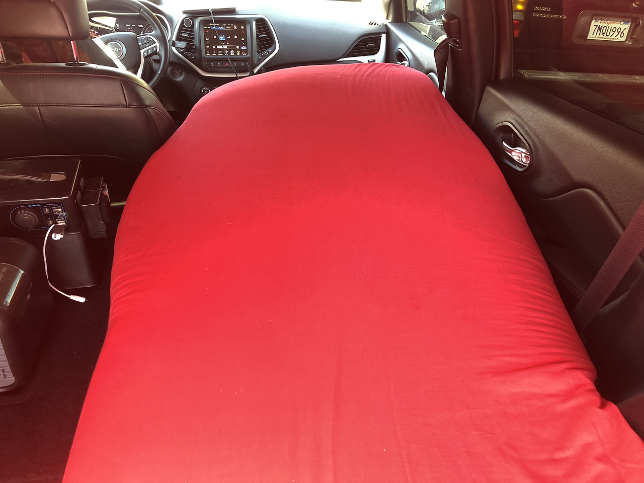 10cm 두께의 싱글사이즈 ‘메모리 폼 매트리스’ 를 차에 완전히 평평하게 설치한다. 이렇게 하면 집에서 자는 것과 거의 같다. (난, 퀸사이즈 침대에서 자더라도 침대 면적의 반밖에 안쓴다.)