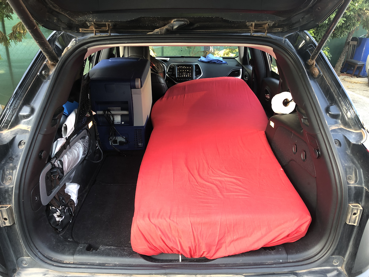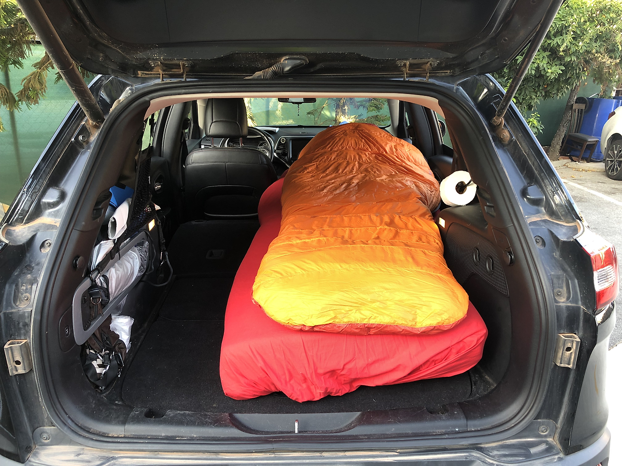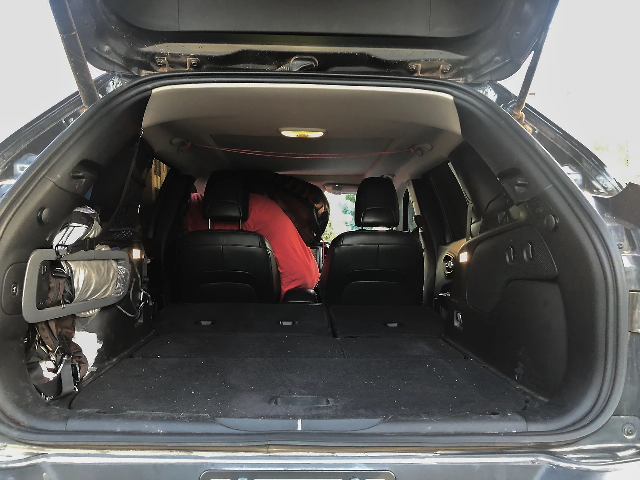 180도 다리를 쭉 뻗고 잘 수 있는 환경을 만들기 위해서는 차량이 그게 가능한 차량이어야 한다. 내가 사용하는 차량은 Jeep 에서 나온 Cherokee 모델이고, 그 중에서도 Trailhawk 라는 ‘오프로드’ 에 특화된 트림인데, 이 차량은 소형 SUV 임에도 불구하고 2열시트가 (거의) 완전히 평평하게 펴진다.