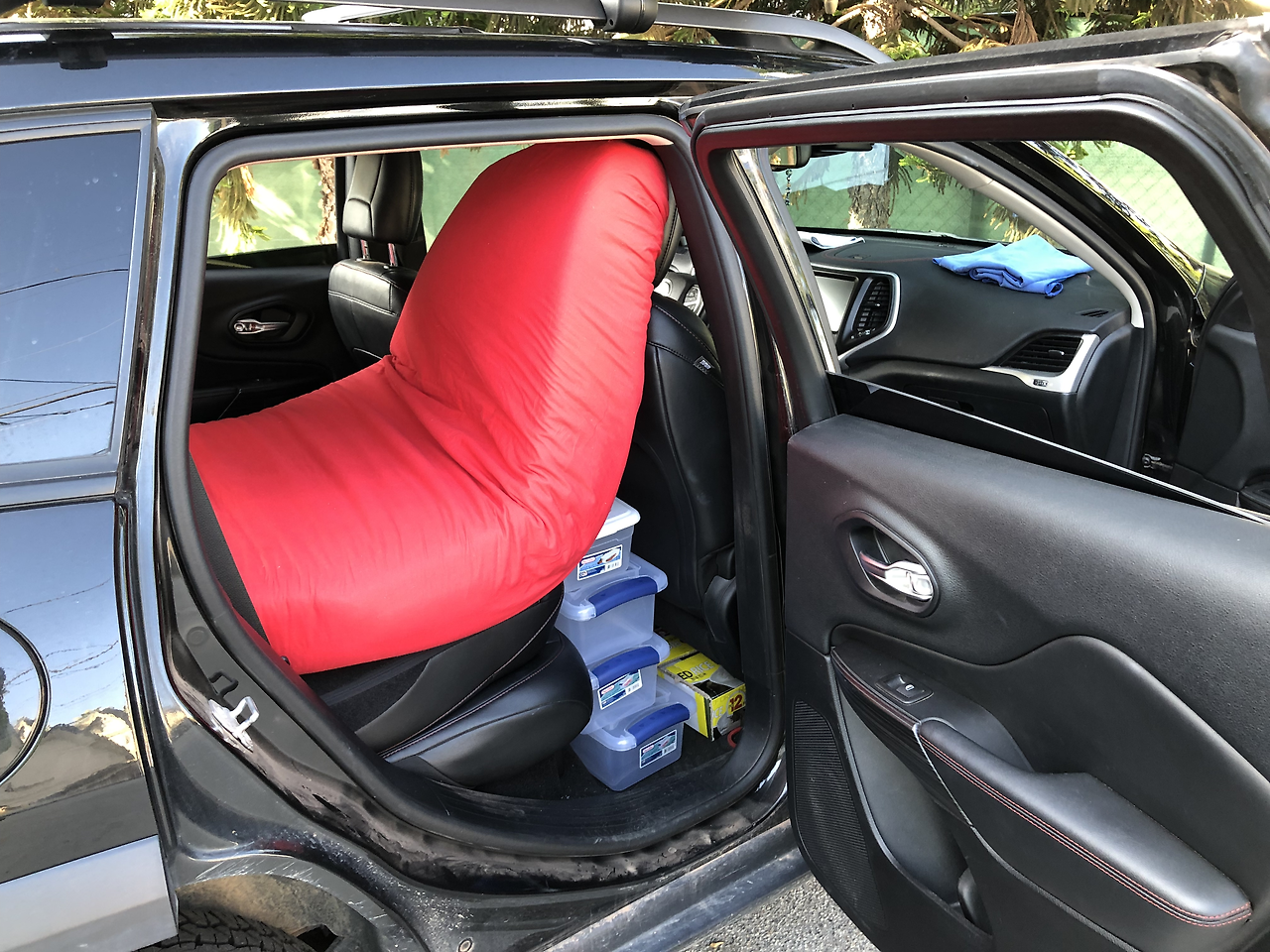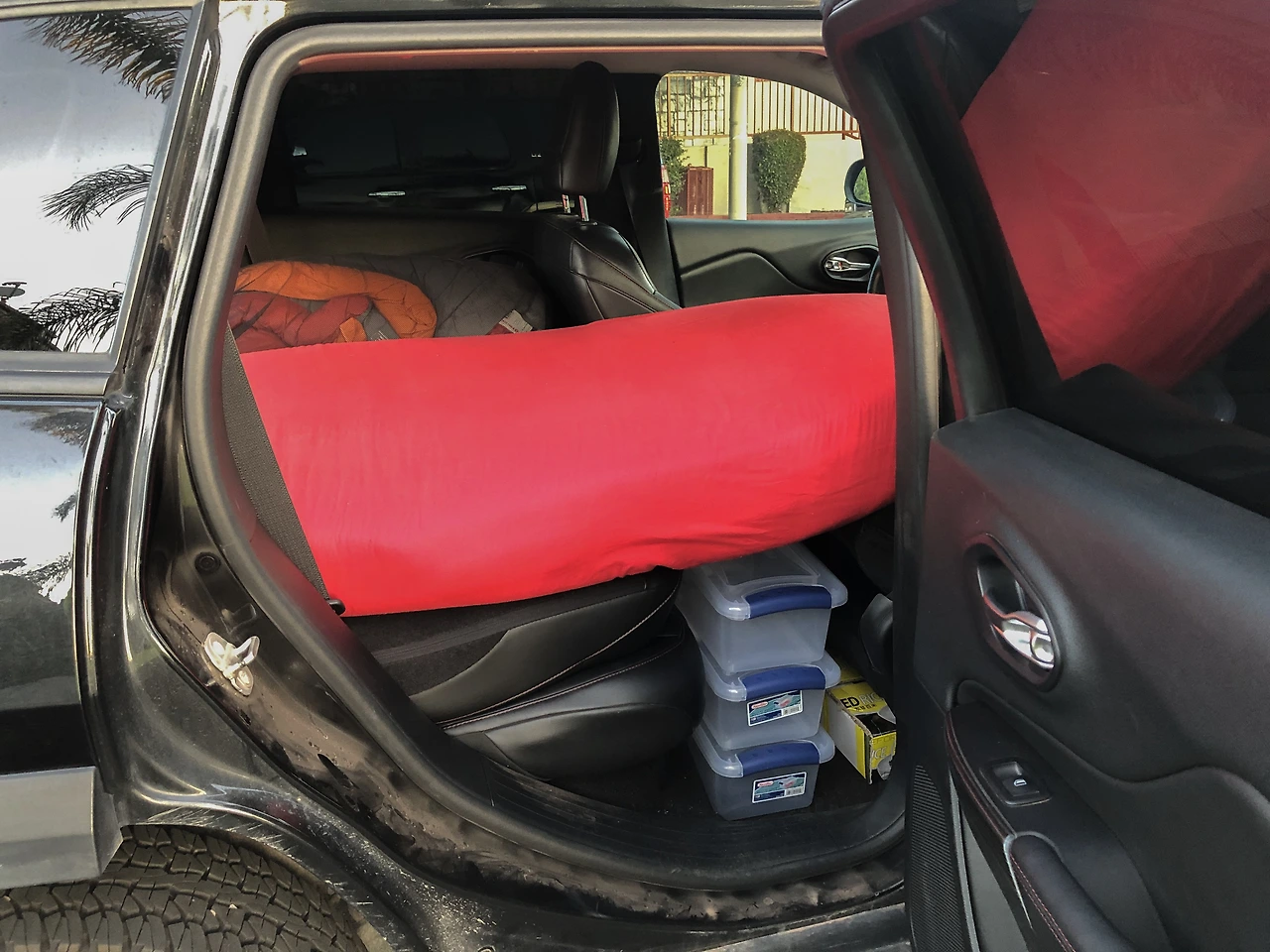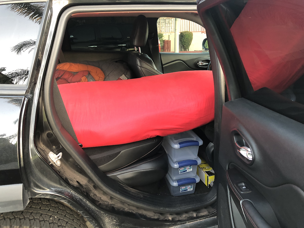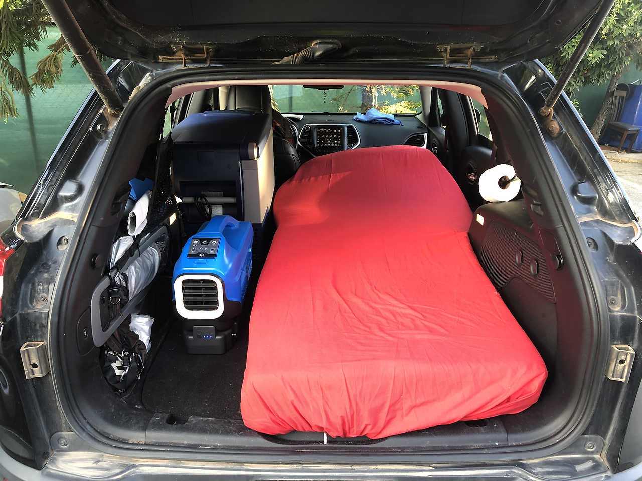 180도 다리를 쭉 뻗고 잘 수 있는 환경을 만들기 위해서는 차량이 그게 가능한 차량이어야 한다. 내가 사용하는 차량은 Jeep 에서 나온 Cherokee 모델이고, 그 중에서도 Trailhawk 라는 ‘오프로드’ 에 특화된 트림인데, 이 차량은 소형 SUV 임에도 불구하고 2열시트가 (거의) 완전히 평평하게 펴진다.