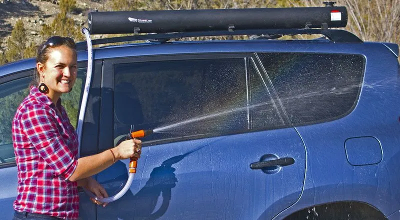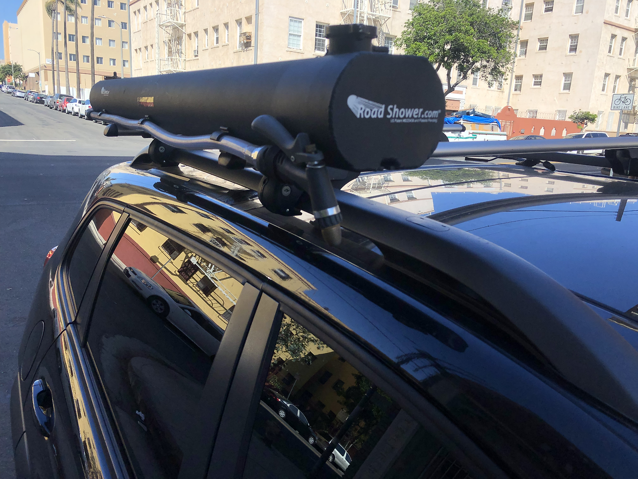하지만 또 다른 신세계를 발견했으니, 현재 미국에서 캠퍼들 사이에서 인기를 끌고 있는 ‘로드샤워’ 라는 제품. 차량 지붕에 올려놓는 물탱크이며, 샤워꼭지가 달려있어서 외부에서 샤워가 가능하며, 컴프레서로 공기를 불어넣어서 별도의 전기 없이도 충분한 수압으로 샤워를 할 수 있다.