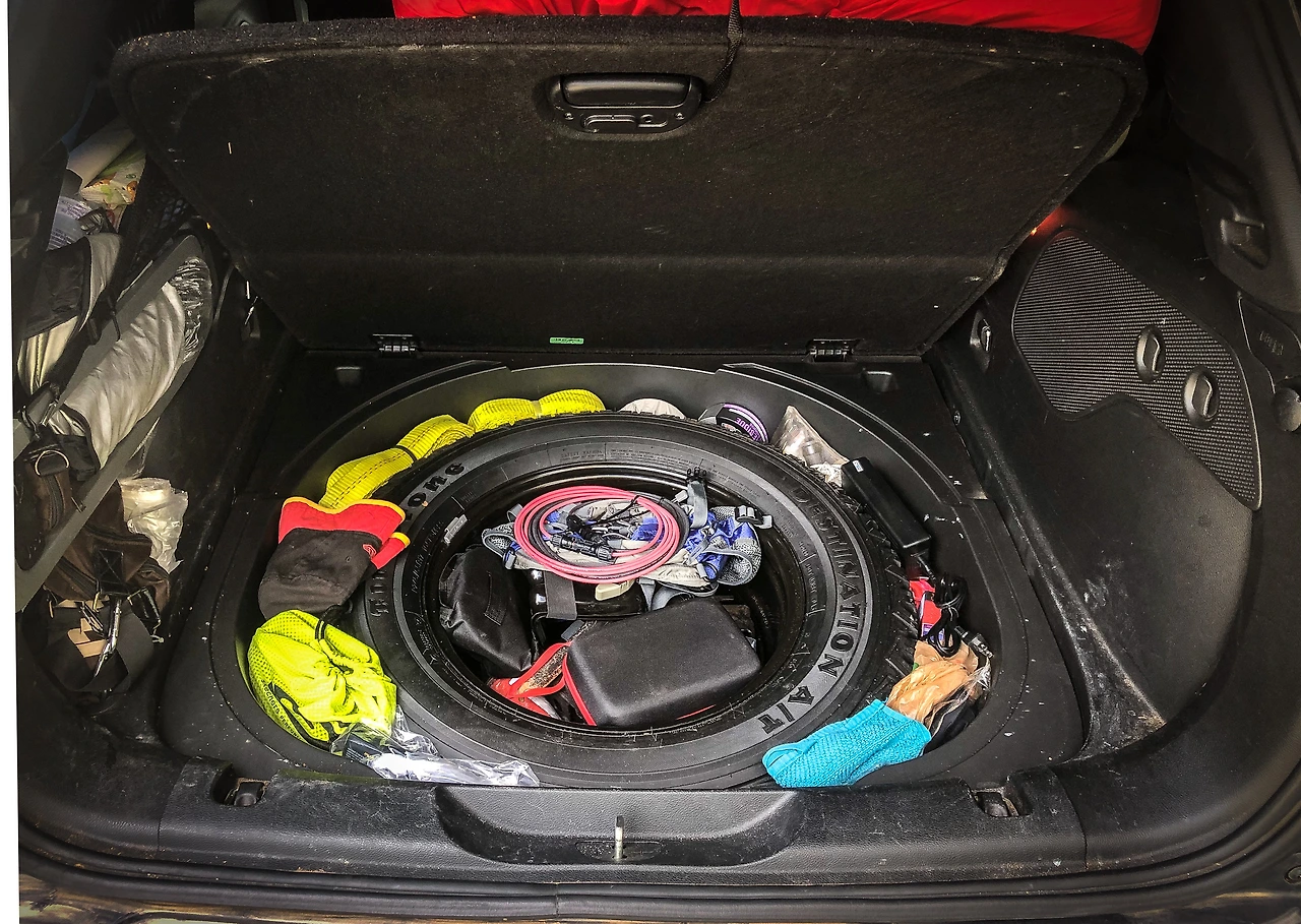 스페어 타이어 보관함에도 빈틈이 많다. 여긴 주로 공구류와 자주 쓰이지 않는 것들 위주.
