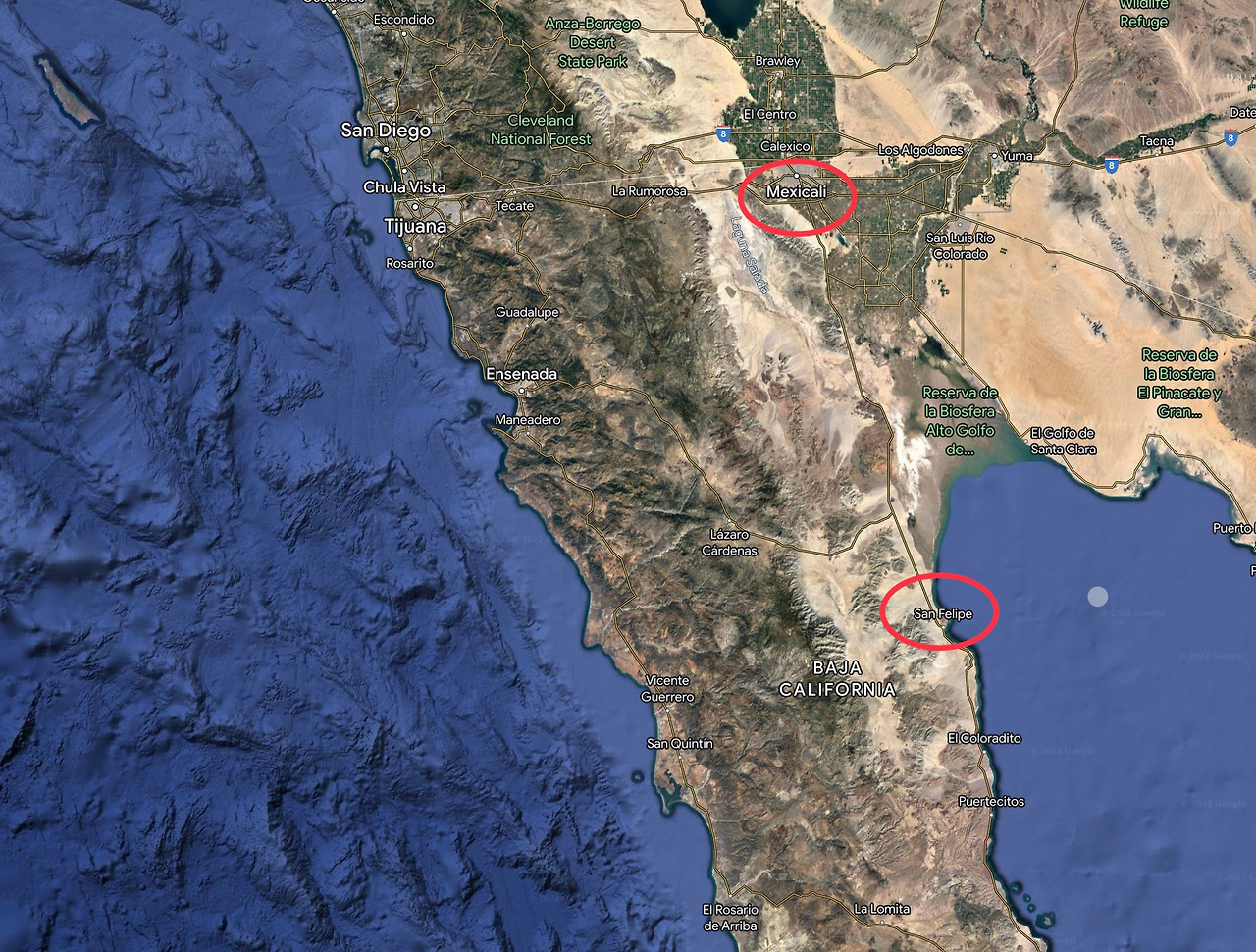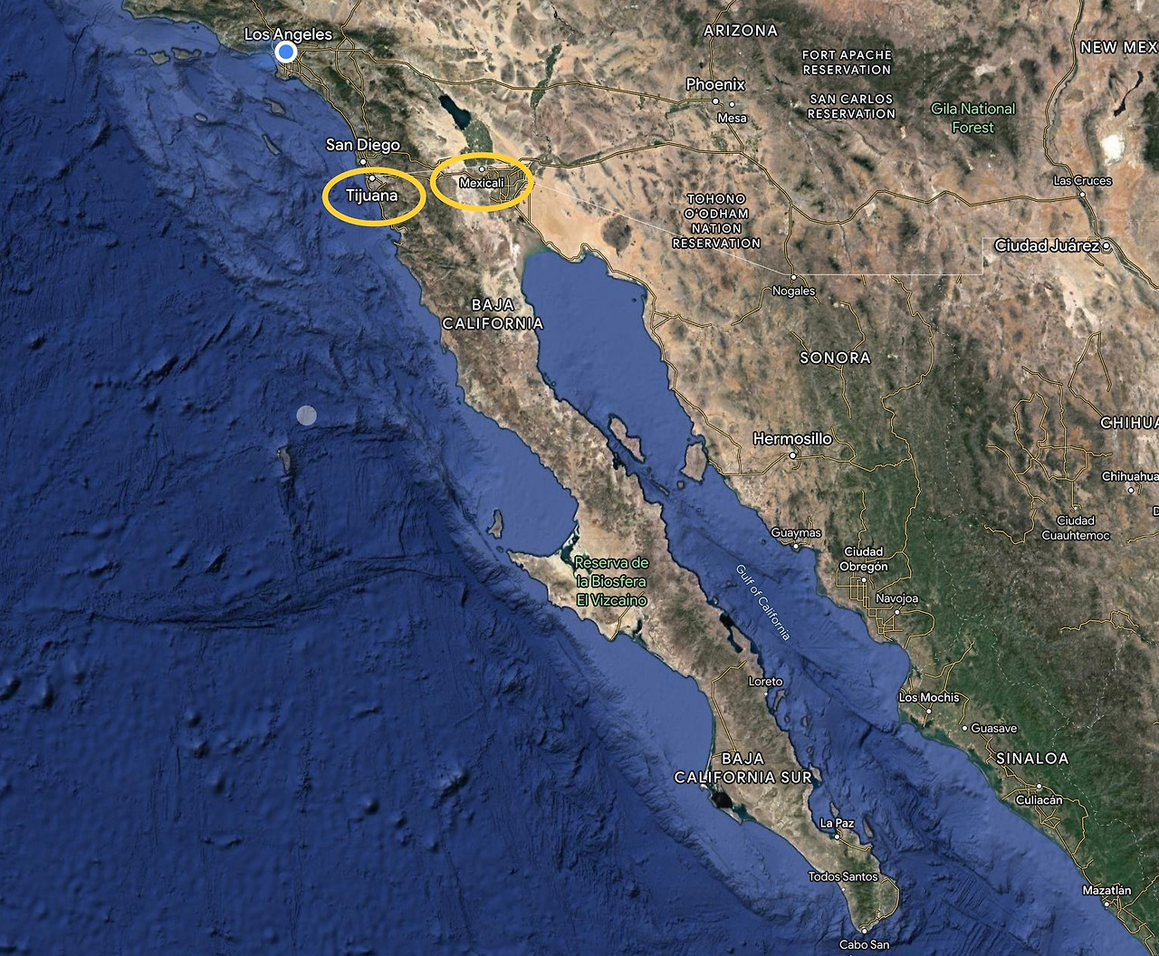 미국에서 차로 ‘바하 캘리포니아’ 에 입국하는 경로는 크게 2가지다. 미국 샌디에고와 붙어있는 도시인 ’티후아나 (Tijuana)’ 를 통해서 들어가는 방법과 이보다 동쪽에 위치한 ‘멕시칼리 (Mexicali)’ 를 통해서 들어가는 방법이다. 이전에 티후아나를 통해서는 멕시코에 들어가 본 적이 있었고, 샌디에고라는 미국의 큰 도시와 붙어있어서 국경이 매우 혼잡하기도 하고, 위에서 설명한대로 ‘바하 캘리포니아’ 의 동쪽 기후가 좀 더 좋을 것 같애서 이번엔 ‘멕시칼리’ 를 통해서 들어가 보기로 한다.
