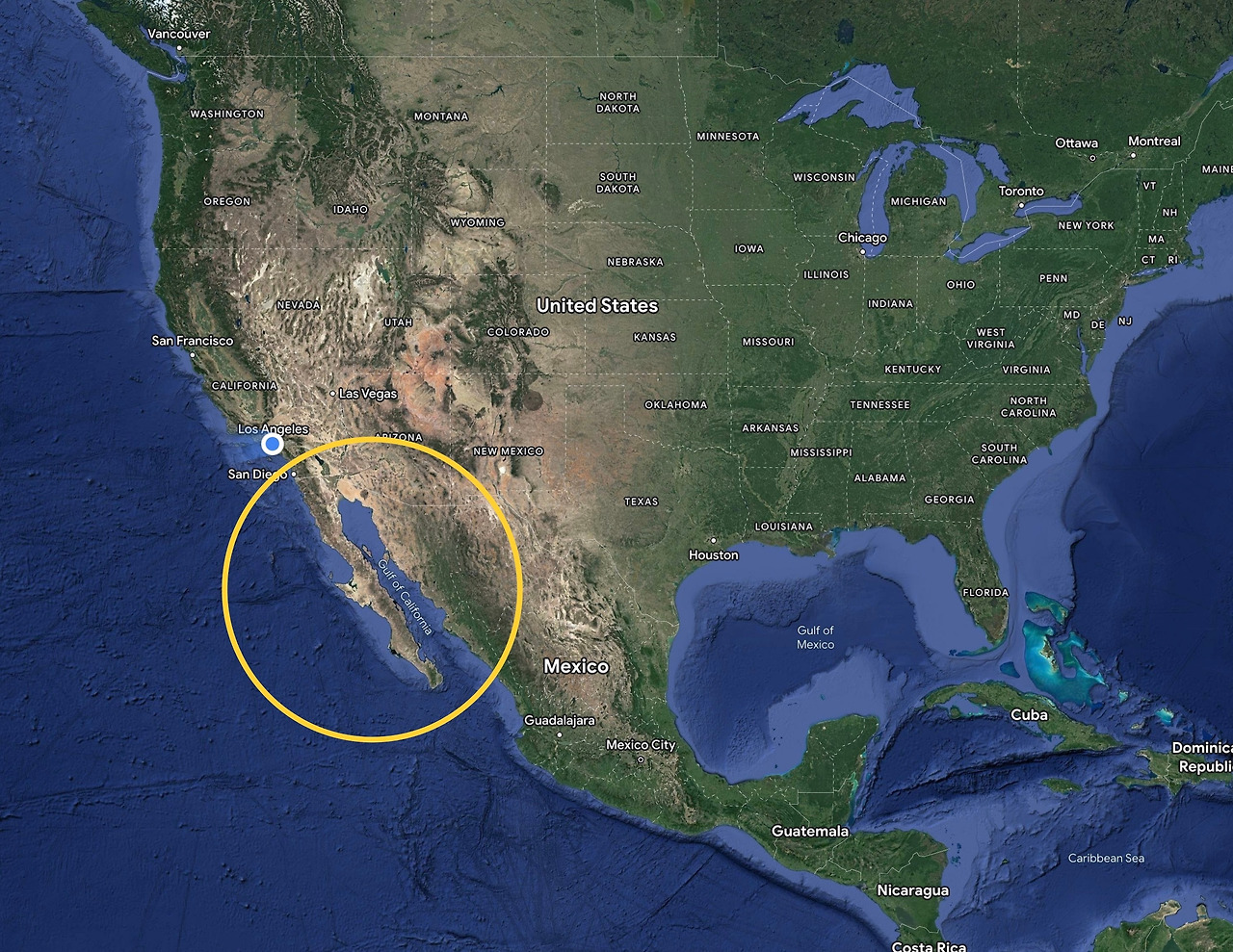 ’바하 캘리포니아‘ 는 멕시코 북서부에 고드름 처럼 볼록 튀어나온 곳으로, 얇고 긴 모양으로 생긴 땅 좌우로 모두 바다가 있는, 바다의 땅이다. (해산물의 천국!) 좌측으로는 태평양이 있고, 우측으로는 캘리포니아만 (Gulf of California) 이 있어서, 동쪽지역은 바닷물의 온도도 높고 파도가 없어서 서쪽보다 더욱 좋은 기후와 환경을 가지고 있다. 마치 호수와 같은 바다라고 보면 될 것 같다.
