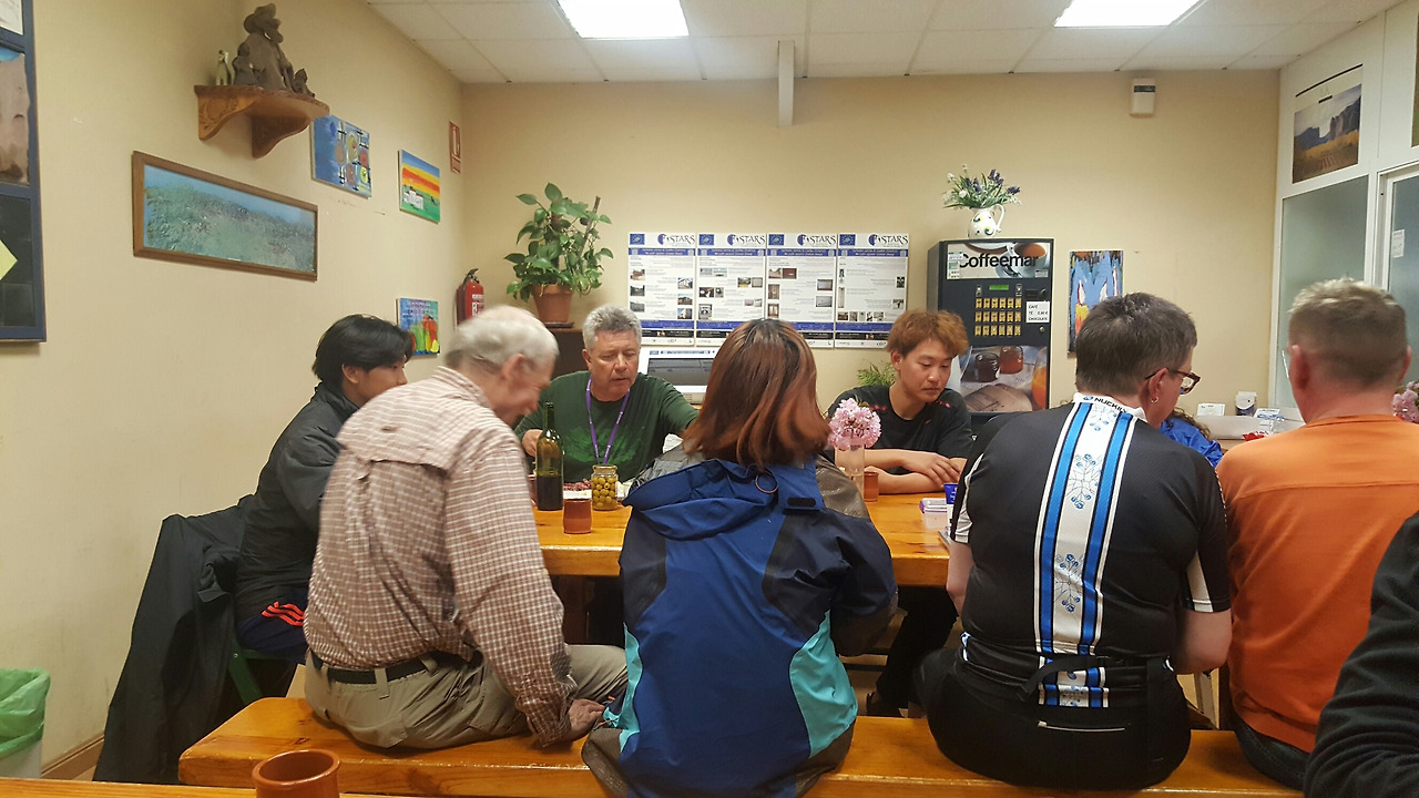 여하튼, 이날 받은 따뜻한 치료와 관심 때문에 난 기분이 업이 되었고 여기저기서 사온 와인으로 술이 차올랐다. 알베르게의 마감시간인 10시가 넘어 10시 반까지 수다를 떨었으니, 지난 로스아르코스에서 내가 구시렁거리며 욕했던 순례자들(늦게까지 술 먹고 수다 떨던)과 다름없이 행동한 것이다. 이런 민폐쟁이같으니라고...