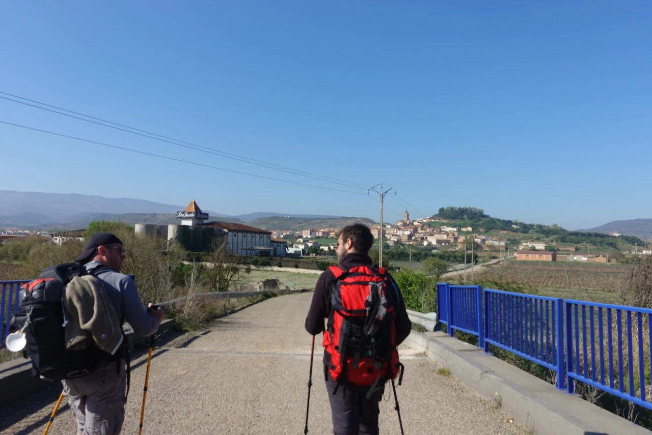 로그로뇨를 벗어나기까지는 꽤 오래 걸렸다. 생각보다 제법 큰 도시였고, 중간에 바에 들려 커피와 빵으로 간단하게 아침을 때웠고, 중간중간 만나는 예쁜 건물과 동상들을 구경하느라 시간을 허비하기도 했다. 로그로뇨 도시 끝자락부터는 길고 긴 공원이 펼쳐지는데 중간에 있는 호수에서 오리 구경도 하고 틈틈이 다른 순례자들과 재회하여 수다를 떨기도 했다. 로그로뇨 시외 초입부터는 길고 긴 산책로를 따라 길쭉한 가로수가 길 양쪽에 나란히 펼쳐지는데 보기만 해도 기분 좋은 그 길을 따라 걸으니 상쾌함과 함께 설레는 기분까지 들었다. 중간중간 돌 벤치가 있어 거기에 앉아 쉬기도 했는데, 그때마다 담배 쟁이 스테판과 같이 있었기에 심심하지 않았다. 왼 다리가 아파서 느린 나와, 까미노 길이 후로 흡연량이 급속하게 늘어 자주 담배를 피우는 그와는 이 날 오전 내내 계속 부딪히게 된 것이다. 오스트리아 국적의 그는 일 때문에 스트레스를 많이 받아 이 순례길통해 여유를 얻고자 왔다고 했다. 그런데 그는 스트레스 없는 이 길에서 더욱 담배가 늘었다는데 왜 때문인지는 그도 알지 못했다.
