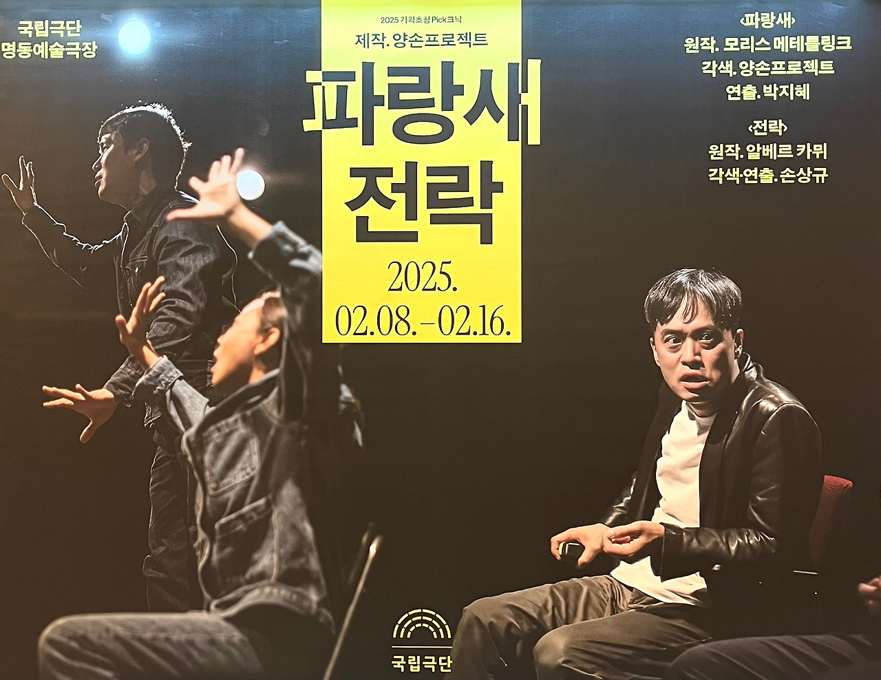 명동 국립극장에서 열린 '파랑새'는 내가 본 '양손프로젝트'의 두 번째 공연이었다. 팸플릿에서 보고 알았는데 내가 본 첫 번째 공연이 양손에게도 첫 공연이었더라. 2011년 산울림 소극장에서 공연했던 '개는 맹수다' 연극을 처음 볼 때, 나는 그 근방에서 열렸던 예술축제인 '프린지 페스티벌'의 자원봉사자였다. 하루에 몇 개의 공연을 봉사자의 신분으로 무료 관람할 수 있었는데 나는 개는 맹수다 공연을 선택했고, 그 후로 무려 14년이나 지났지만 지금까지 제일 좋아하는 연극 공연으로 '개는 맹수다'를 꼽는다. 그 뒤로 몇 번이고 그들의 연극을 다시 보고 싶었지만 타이밍이 맞지 않았는데 이번에 드디어 '파랑새' 티켓팅에 성공했다.