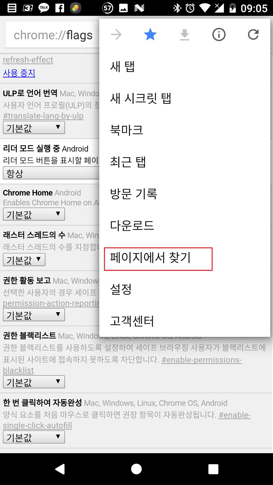 “페이지에서 찾기”를 누르고