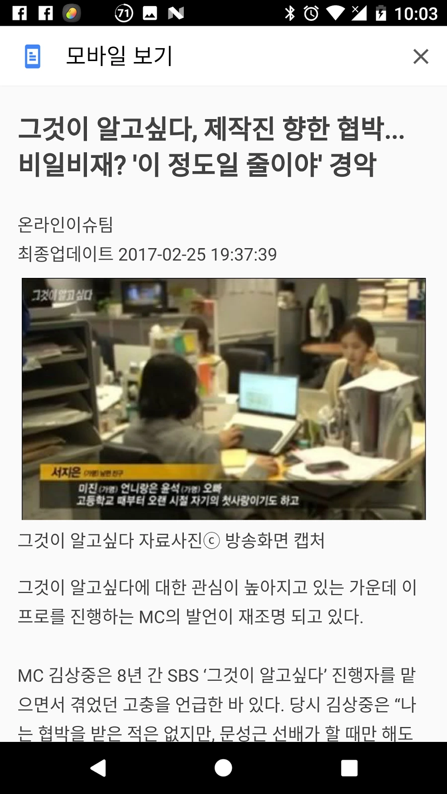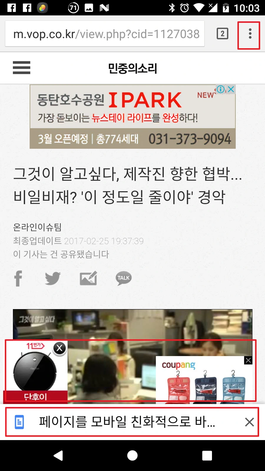 그림 1에서 제일 밑에 “페이지를 모바일 친화적으로…”를 누른다. 그럼, 그림 2처럼 깨끗한 기사가 나타난다.