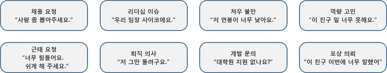 인사부서에는 아래와 같이 다양한 요청과 불만들이 접수됩니다.