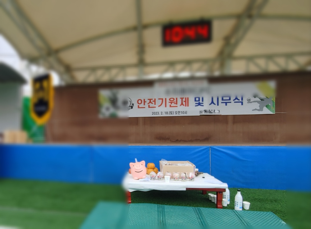 비가 오나 눈이 오나 팀은 운동을 쉬는 날이 없었다. 비가 오나 눈이 오나 축구를 했다. 그렇게 한 계절이 지나고 2023년 2월. 새로운 축구동호인 문화를 알게 되었다. 바로 '시무식 및 안전기원제'. 축구동호회에서는 매년 초 한 해 운동의 시작을 알리는 시무식과 부상 없이 한해 운동이 끝나기를 바라는 안전기원제를 지낸다. 코로나19 사태로 2년 넘게 행사를 못하다가 올해 다시 시작한다고 회장님이 설명하셨다.