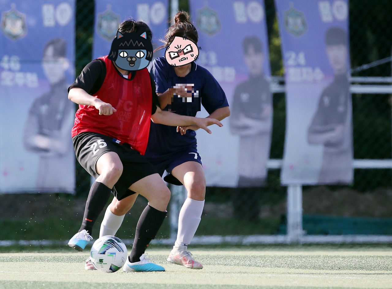 의기투합한 몇 명의 후배들이 있긴 했지만, 축구는 11명이 뛰어야 하는 법. 주장으로 나선 후배가 선수 모집에 들어갔다. 남자선수들이 뛰는 대회이긴 하나, 여자선수가 출전하지 말라는 규정은 없기에 주장 후배의 영입 엔트리에 나도 속하게 됐다. 사내에 이미 소문난 '공 차는 여자'였기 때문이다. 같이 뛰자는 제안을 받았을 땐 남자들과 뛰어야 하는 부담감이 없지는 않았지만 '하면 재미있겠다'는 기대감이 더 컸다. 배 나온 아재선수들 보다는 주 3일 이상 공을 차는 내가 낫지 않을까 하는 근자감(근거 없는 자신감)도 있었다. 그렇게 나는 우리 회사팀 유일의 여자 선수로 대회에 나가게 된다.