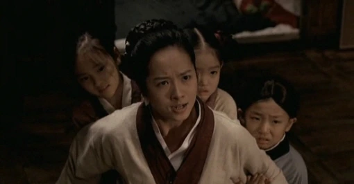 계백의 칼을 막아서는 계백의 부인, <황산벌, 2003>