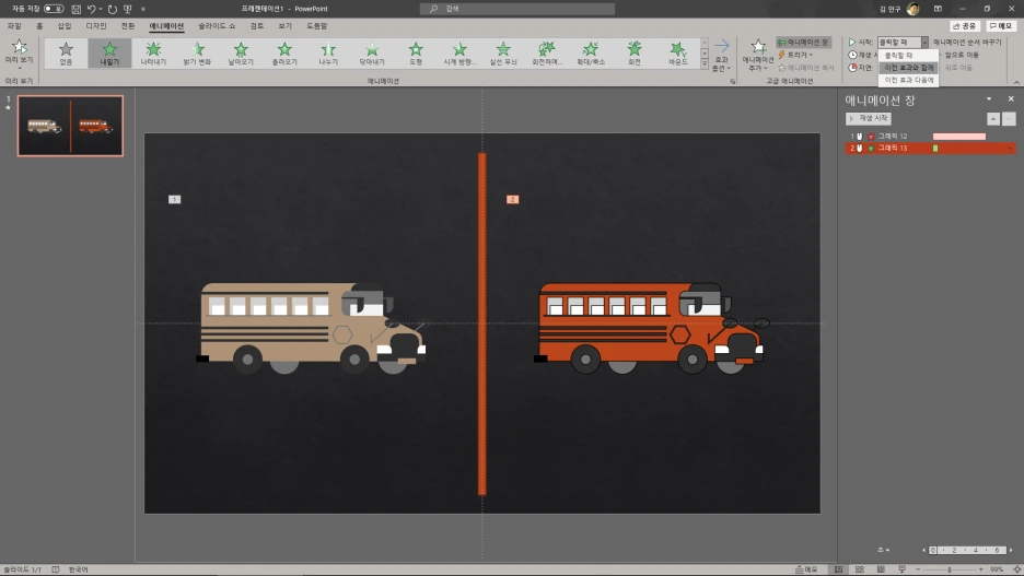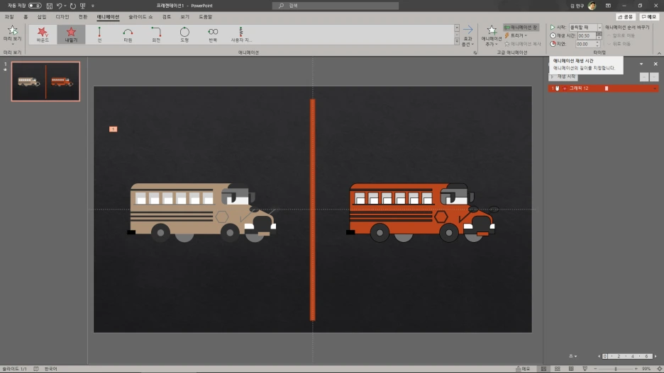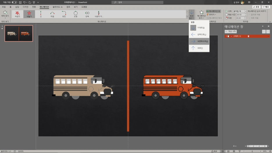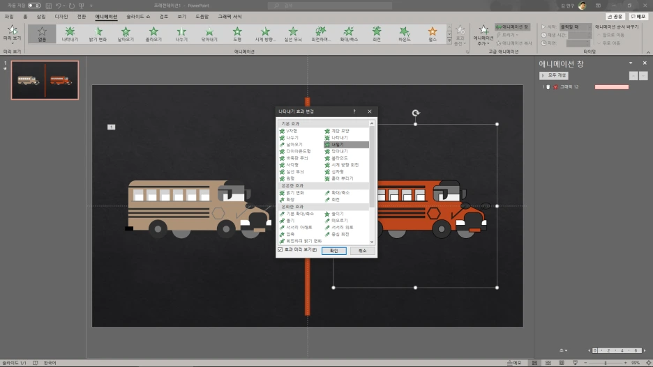 l 애니메이션: [끝내기-내밀기], [나타내기-내밀기]