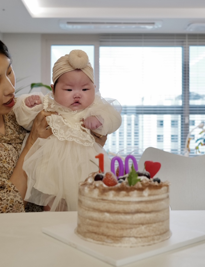 오늘은 백일 맞이 간단하게 케이크를 사고 사진을 집에서 찍었다. 엄마가 웃는 모습이 참 좋더라. 정작 주인공인 딸은 어땠는지 모르겠네? 나중에 추억할 수 있는 날 되기를.