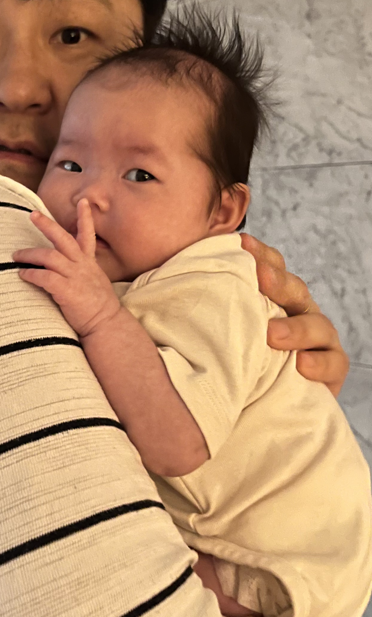 하나씩 또 배워가는 게 있는 하루였다. 가만히 트림을 시키다가 채 못해 누우면 낑낑대고 다시 트름을 하면 푹 자는 것도 또 배웠네. 자세를 항상 바꿔가면서 해야 될 것 같아. 황금똥을 루틴에 맞게 아침마다 싸는 것도 얼마나 좋은지. 우리딸은 똥냄새도 귀여워.