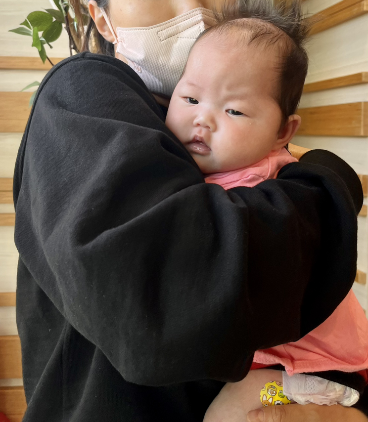 어른어른 엄마의 위로가 많이 닿았는지. 오늘 여러 접종을 맞았지? 주사가 막 들어갔는데 어떻게 컨디션이 괜찮나 모르겠다. 열이 조금씩 나고 있어서 공청기와 부채로 체온을 내리고 있어. 그래도 잘 버텨주는 거 같아 고맙다 우리 딸!