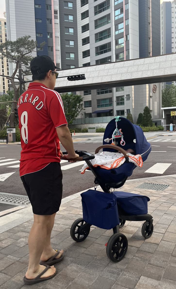 새 유모차를 조립했고 딸을 처음으로 태웠다. 한바퀴 산책을 하는 사이 잠에 들진 않았지만 안정적으로 누워있어서 편안해보였어. 멀리 자주 가진 못해도 이렇게 리프레시할 시간도 주고, 우리 딸 너무 효녀야. 고마워.