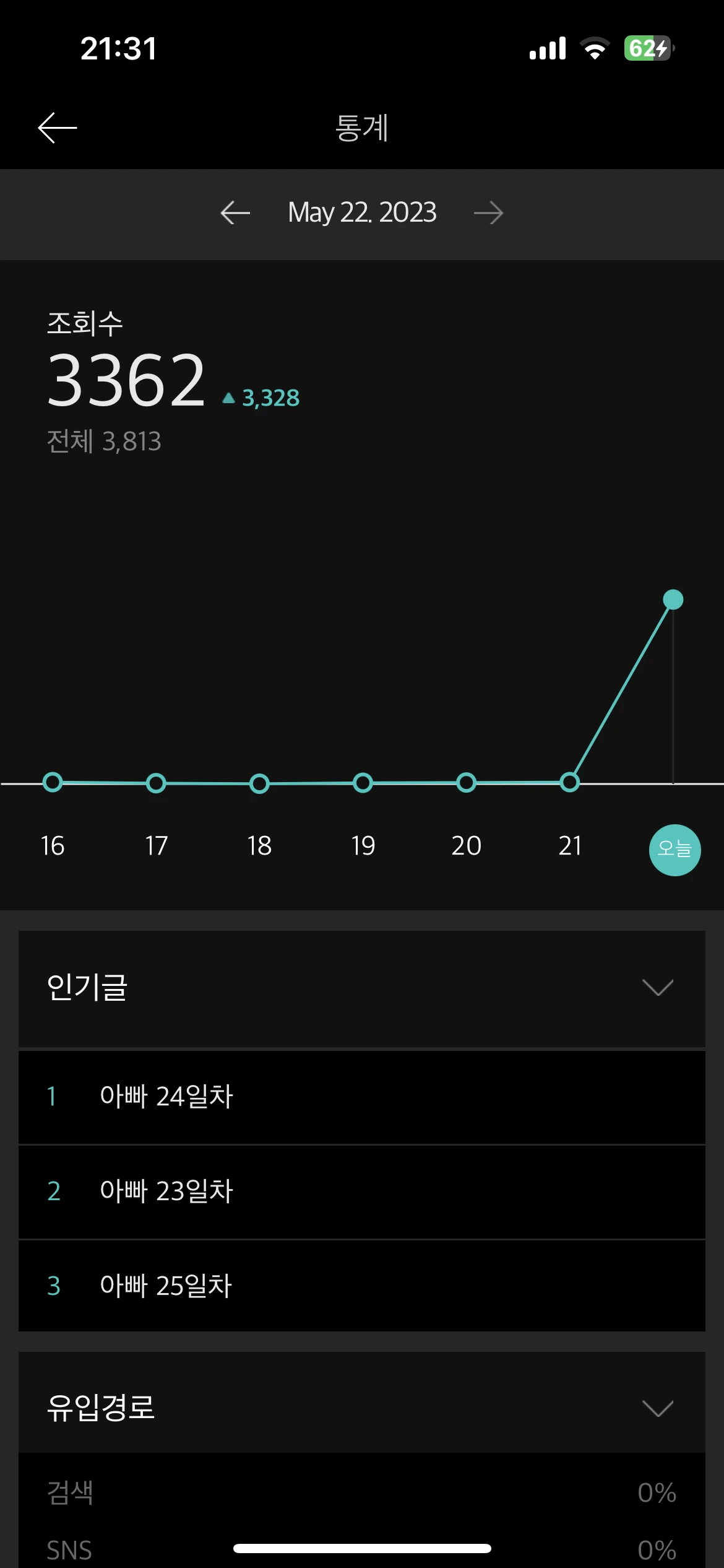 오늘은 아빠의 브런치에 무슨 일이 있는지 3천명이 넘는 사람이 다녀갔어. 매일 우리 딸에게 보내는 편지가 남들한테도 읽히고 있다니 신기하지? 꾸준히 쌓아가는 것만이 방법인가보다.