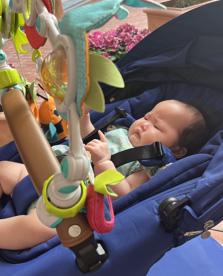 새삼 손발이 커졌다고 느꼈네. 우리 아이, 처음과 비교하면 옹알이도 커졌다. 새삼 벌써 이렇게 컸나 싶다. 우리 딸은 엄마 아빠 때문인지 아기답지 않게(?) 외출이 잦지. 주로 더위나 비를 피해 백화점이나 쇼핑몰을 가는 편이라 이런 곳에서의 소음과 빛 공해를 잘 해소하는 게 과제다.