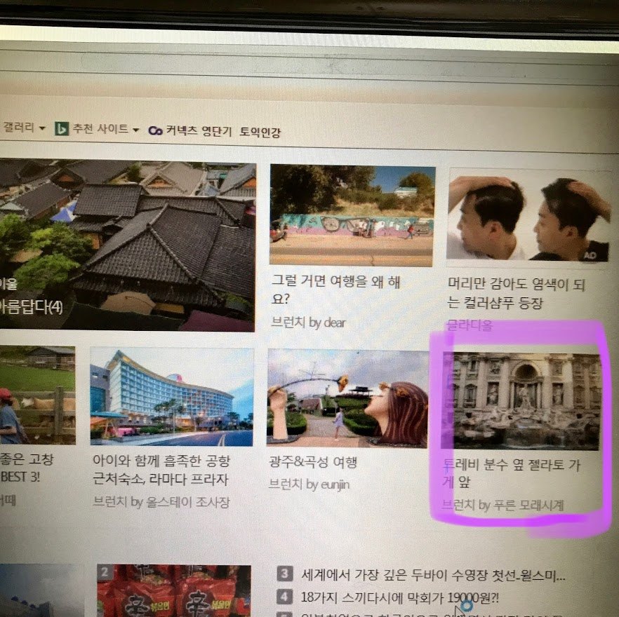 < 트레비 분수 옆 젤라토 가게 앞 > 은 글을 올린 다음날 daum 메인과 카카오톡 #탭에 노출되었다.