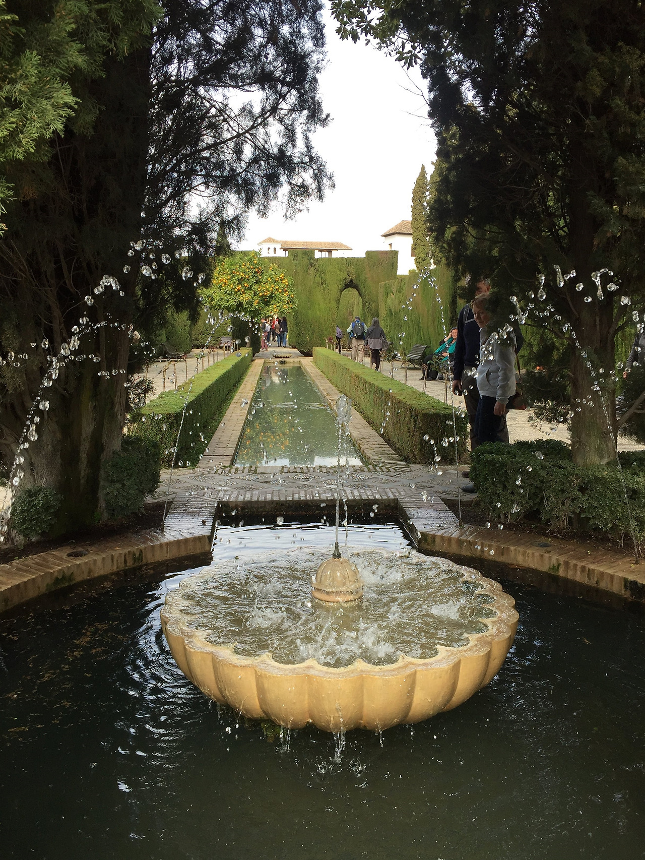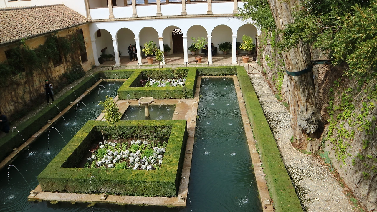 헤네랄리페 정원은 가끔 기억 속에서 페레로로쉐 초콜릿 이름과 혼동되기도 합니다. 헤네랄리페와 페레로로쉐. 끝말잇기를 해도 될 것 같은 오페라의 두 주인공 이름 같기도 하네요. 세상 만물을 건축한 유일신 알라가 빚은 정원이라니 이름에서부터 그 아름다움이 어떨지 상상이 되지 않나요? 헤네랄리페는 길쭉한 물길 위로 포물선을 그리듯 내려앉는 물줄기 사진으로 유명하지요. 알함브라는 산처럼 올라야 해서 가끔 오르다 고개를 돌려 지나온 곳을 내려다보게 됩니다.