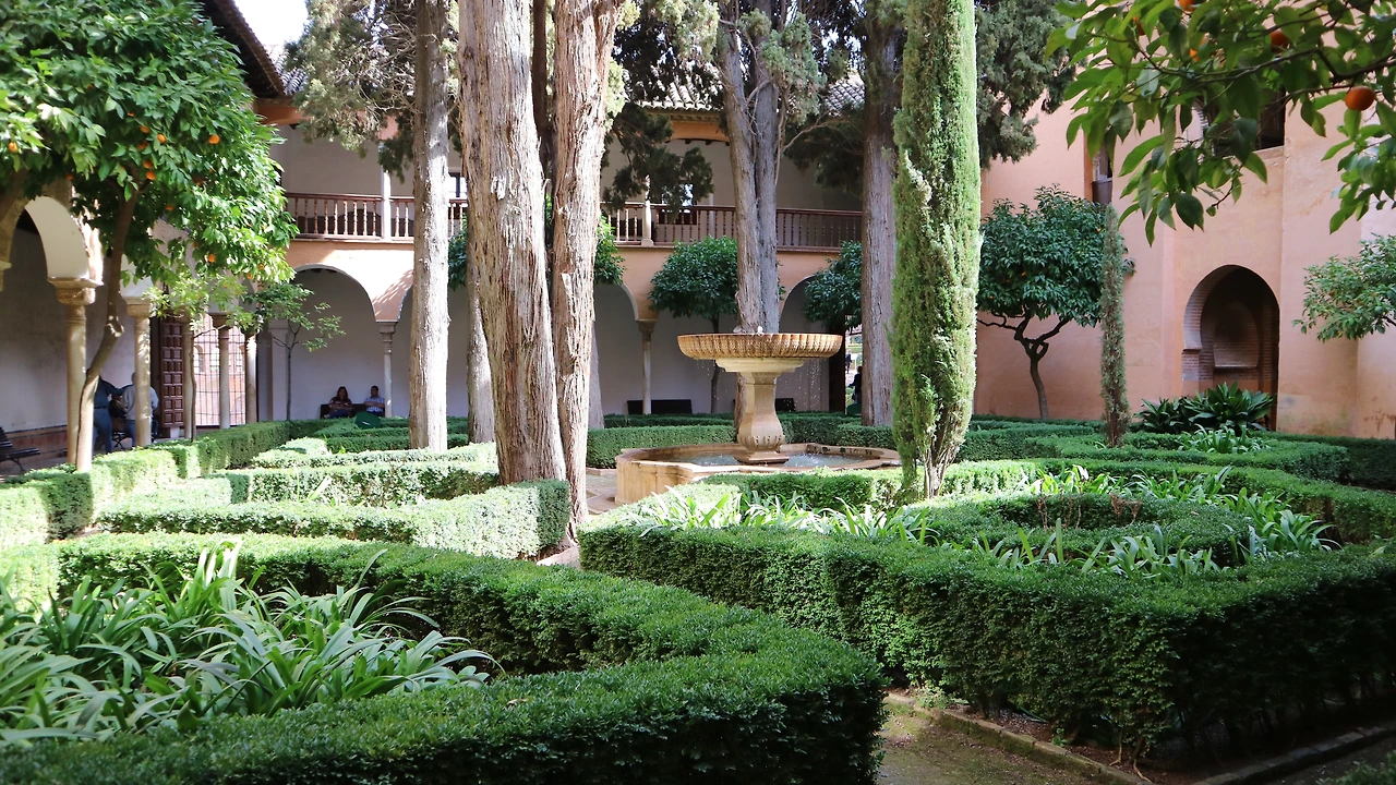 이 궁전 안에 왕의 집무실과 대상의 방이 있는 코마레스 궁이 있습니다. 코마레스 궁에 딸린 아라야네스 정원은 알함브라의 상징으로 불립니다. 굉장히 정돈된 느낌입니다. 사방이 건물로 둘러싸인 정원을 파티오 Patio라고 해요. 스페인 사람들이 유독 사랑하는 건축양식의 하나라고 하니 역시 역사는 거미줄처럼 얽히고설킨 가운데 서로 영향을 주고받는 숨 쉬는 유기체와 다름없습니다.